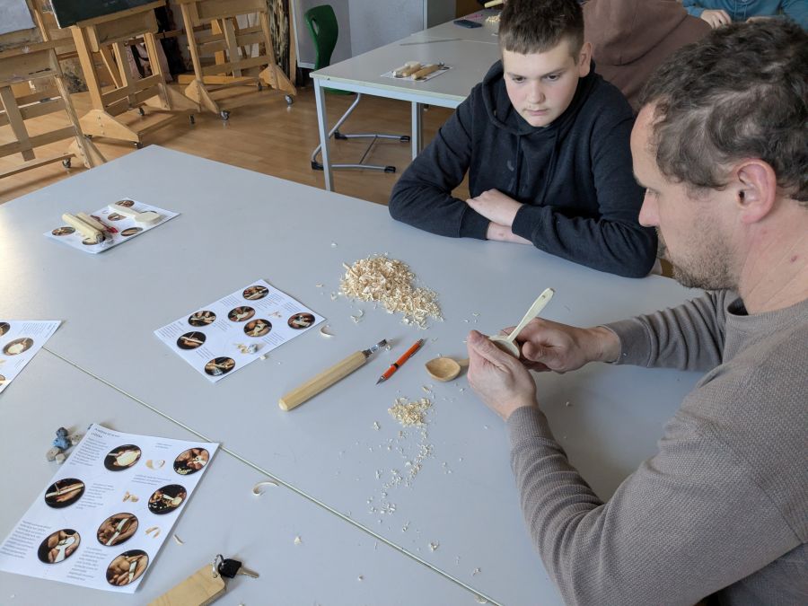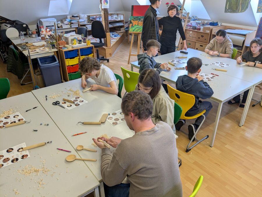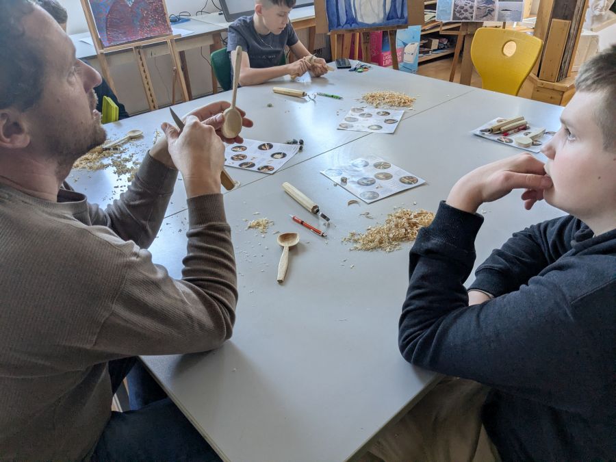 Dňa 7. 3. 2026 sa žiaci z výtvarného odboru zúčastnili rezbarského kurzu pod vedením Dušana Budinského, kde mali možnosť skúsiť si vyrezávanie drevenej lyžičky. Na pár hodín sa výtvarná trieda č. 3 na Kostolnom námestí premenila na rezbársku dielňu. Žiaci si užili jedinečný zážitok práce s drevom, kde si aj domov odniesli vlastnú ručne vyrezanú drevenú lyžičku. Z jednoduchého kusu dreva a krok za krokom ho premenili pomocou rezbárskeho nožíka a lyžičkára. Prešli procesom, ktorý vyžaduje trpezlivosť, cit a pracu s drevom v súlade.